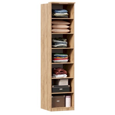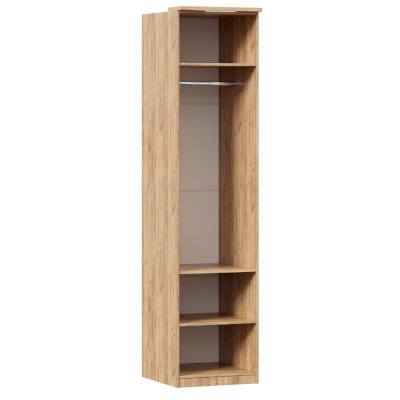 - За распашным фасадом 6 полок и штанга для одежды. Высота между полками 300 мм